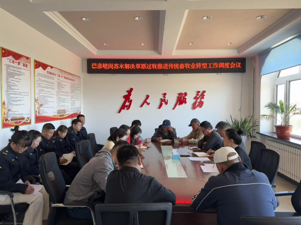 会议传达学习了鄂温克族自治旗解决草原过牧推进传统畜牧业转型工作会议精神。会议以系统解决草畜过牧问题、推动畜牧业转型为目标导向,对巴彦嵯岗苏木超载过牧“一户一策”实施情况等相关工作做出安排部署。