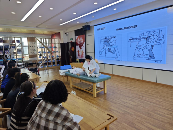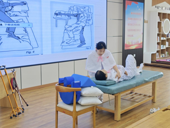 本次培训邀请了呼伦贝尔职业技术学院医疗护理领域的资深专家担任讲师。培训内容丰富实用,涵盖失能老年人生理心理特点、日常生活照料技巧、康复护理方法(关节活动训练、肌肉按摩等)、常见疾病护理要点、应急救护知识以及心理关怀与沟通技巧。培训采用理论讲解与实操演练相结合的方式。理论讲解环节,讲师们运用通俗易懂的语言、生动形象的案例,将复杂的专业知识深入浅出地传授给学员,让大家对失能老年人照护有了更系统的认识。实操演练环节,学员们在讲师的指导下分组进行操作练习,亲身体验各项照护技能。讲师们逐一纠正学员的不规范动作,确保每个人都能掌握正确的操作方法。例如在协助失能老人翻身的实操中,讲师详细讲解并演示了翻身的步骤、角度、力度以及如何借助辅助工具等,学员们反复练习后,熟练掌握了这一重要技能,为日后照顾老人打下坚实基础。