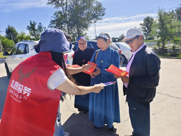 通过发放宣传资料、海报等形式,向群众广泛宣传《内蒙古自治区促进民族团结进步条例》《内蒙古自治区宗教事务条例》《六句话的事实和道理》等相关法律法规,引导群众深刻认识民族团结是各族人民的生命线,自觉将个人发展融入到民族团结进步事业中,共同营造互助互爱、和谐共融的良好氛围。