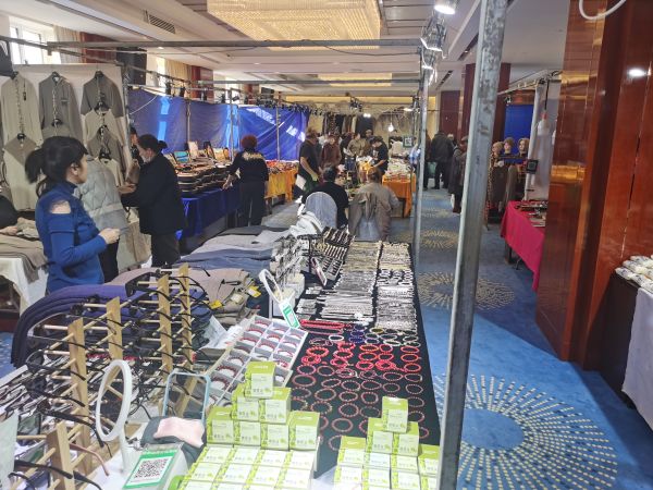 此次展销会在水晶湾酒店6楼举办,历时6天,共有40家商户参加,展销产品包括民族服饰、鞋帽、工艺品、化妆品、休闲食品、银饰品等200余种商品。