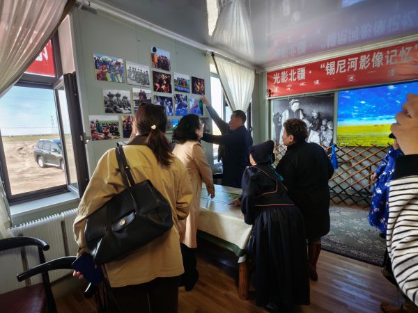 展览期间,吸引了摄影爱好者、文化学者及普通群众,以及于德龙镜头里的主角也到场观看。展览以镜头为笔,定格了锡尼河近四十年四季的自然之美与当地牧民的生产生活百态,成为连接大众与北疆文化的视觉桥梁,让观众看到春日草原的生机盎然、夏日牧歌的悠扬婉转,能读懂牧民脸上的幸福笑容,更能感受到“爱国、忠诚、团结、担当”的北疆文化内核在锡尼河畔的生动实践。这些影像既是锡尼河的“成长日记”,也是祖国北疆76载发展变迁的缩影,让更多人看到了我们守护边疆、创造美好生活的真实图景。