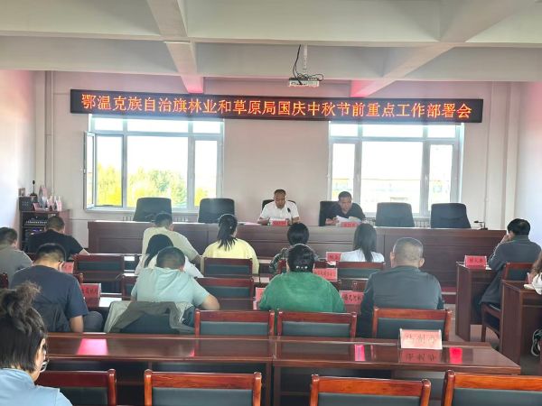 9月28日,鄂温克族自治旗林业和草原局召开国庆、中秋节前重点工作部署会,传达上级文件精神,部署“两节”前后安全生产、值班值守等工作,并围绕严禁违规吃喝、违规收送礼品礼金等纠治“四风”相关要求开展集体谈话。局机关各科室、三级单位主要负责人参加会议。
