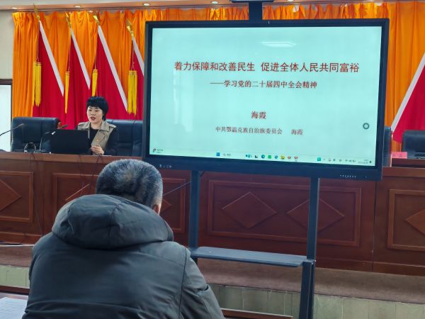 本次培训通过集中授课的形式,邀请中共鄂温克族自治旗委员会党校教师海霞,海霞以《着力保障和改善民生促进全体人民共同富裕—学习党的二十届四中全会精神》为主题,从“十四五”时期我国民生事业发展成就、“十五五”时期保障和改善民生的指导思想、“十五五”时期保障和改善民生的制度安排等内容,围绕“十五五”时期的代表关注的民生问题进行了详实细致的讲解。