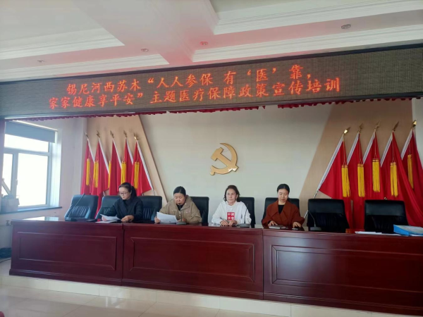 为做好城乡居民基本医疗保险的宣传和服务工作,近日,锡尼河西苏木开展“人人参保有‘医’靠,家家健康享平安”2025年全民医保政策宣传培训会。会议由副苏木达巴雅尔玛主持。邀请旗医保局有关领导和工作人员,社会治理办工作人员,各嘎查医保协理员参加会议。