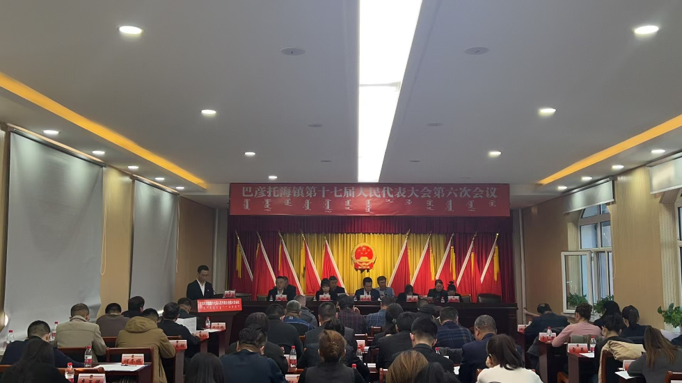 11月20日,巴彦托海镇第十七届人民代表大会第六次会议胜利召开,来自全镇各条战线上的51名人大代表出席会议。