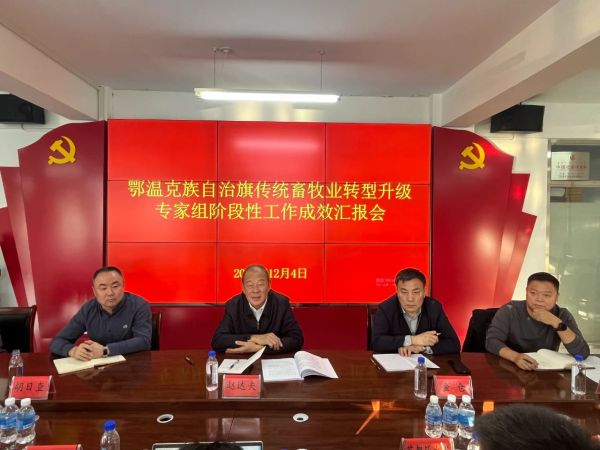 12月4日,鄂温克族自治旗召开传统畜牧业转型升级专家组阶段性工作成效汇报会。市级领导赵达夫、金仓,旗级领导胡日查、福青,专家组、相关部门、苏木乡镇代表和“三变”改革试点嘎查驻村第一书记、“两委”主要成员等参加会议。