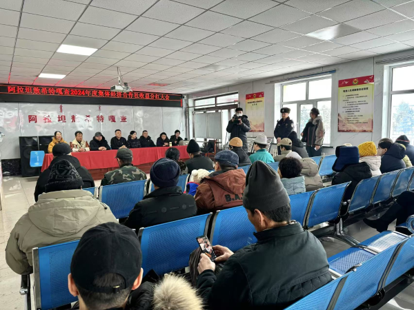 1月26日,巴彦嵯岗苏木阿拉坦敖希特嘎查集体经济合作社分红大会热烈召开。牧民们欢聚一堂,共享集体经济发展硕果,喜迎新春佳节。苏木党政班子、嘎查“两委”班子、驻村工作队及牧民代表等30余人参加仪式。
