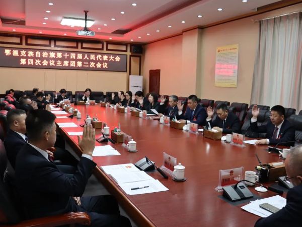 2月21日,鄂温克族自治旗第十四届人民代表大会第四次会议召开主席团第二次会议,王君、敖慧然、浩特勒等主席团成员参加会议,索优乐玛主持会议。
