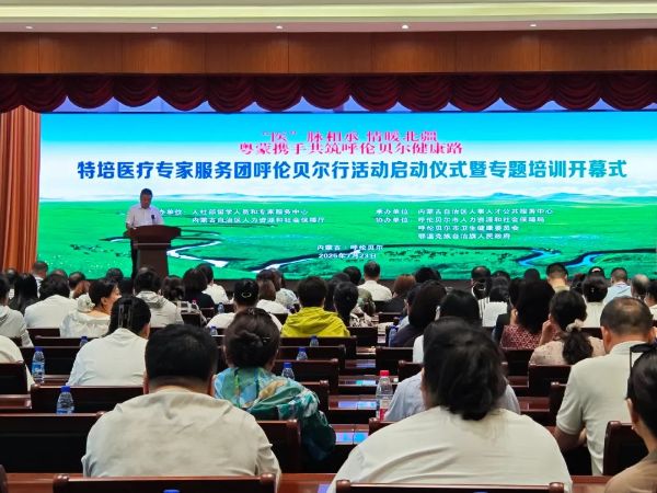 旗领导敖慧然主持启动仪式,人社部留学人员和专家服务中心党委书记沈水生,内蒙古自治区人力资源和社会保障厅二级巡视员王立梅,呼伦贝尔市政府副市长孙微,特培团专家代表、广东省中医院林定坤教授出席启动仪式并致辞。