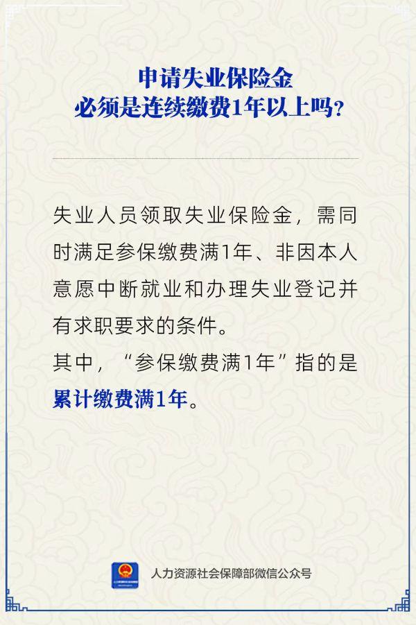 申请失业保险金必须是连续缴费1年以上吗?