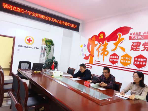 3月28日,鄂温克族自治旗红十字会党组理论学习中心组集体学习研讨习近平总书记在学习贯彻党的二十大精神研讨班开班式上的重要讲话精神。旗红十字会党组书记、常务副会长邵玉峰主持会议。