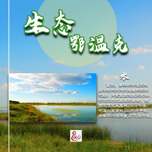 鄂温克族自治旗境内河流均属黑龙江上游额尔古纳河水域、海拉尔河水系,在境内263条河流中,河流长度大于20千米以上的就有31条,河流总长度为5397.97千米,河道水面面积108.8平方干米,多年平均径流量10.7亿立方米。主要有伊敏河、辉河、莫和尔图河、扎尼河、锡尼河、维纳河、辉腾河等。伊敏河是全旗最大河流,从南向北贯穿全旗后经海拉尔区汇入海拉尔河,干流长359.4千米,干支流长3998.46千米,流域面积为22570平方千米,水面积86.4平方千米,多年平均径流量10.8亿立方米。辉河为伊敏河的最大支流,是自治旗内河,干流长362.5千米,干支流总长度为1279.76千米,全流域面积11465平方千米,多年平均径流量1.12亿立方米。