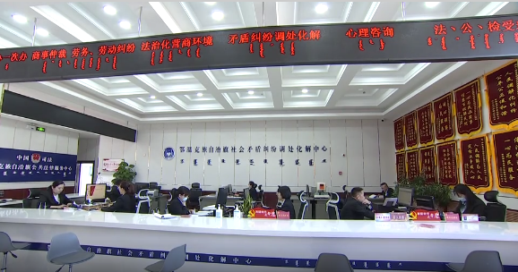 发挥社会组织力量,打造适合牧区特色的矛盾调处化解新路径。面向社会公开招录10名专职调解员(包括三名蒙汉兼通、一名“四语”调解员),设置群众意见征集、矛盾纠纷调处、公证、法律咨询、法律援助等六个窗口,实施“1+10+N”(1个旗级矛调中心,10个行业协会,N个矛盾调处平台) 的矛盾纠纷调处工作模式。通过内融+外联,将解决群众所需的各项职能融入中心,整合行政、司法、社会等资源于一体,为群众提供覆盖全领域、全过程的优质服务,切实把矛盾纠纷化解在萌芽状态;健全与法院、检察院、信访、公安、司法、劳动监察、林草等部门的工作衔接,使跨部门业务办理无缝对接,实现让百姓“进一扇门办所有事”的工作原则。