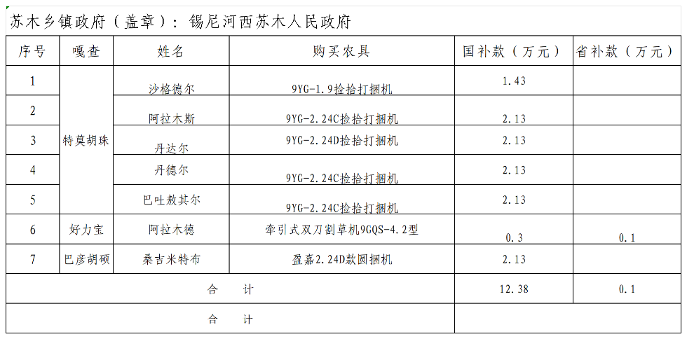 鄂温克族自治旗锡尼河西苏木农机补贴项目公示(第二批)
