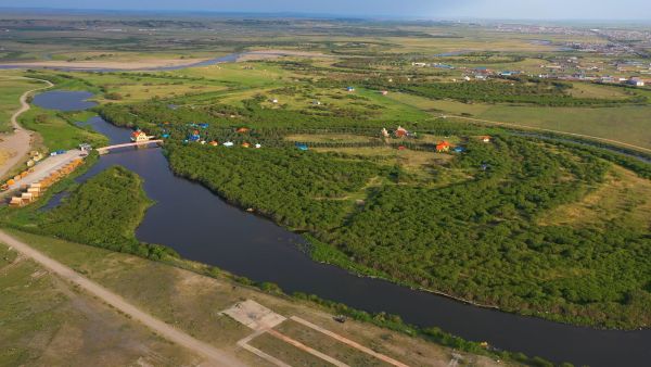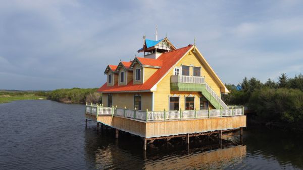 晨光生态园整体建筑设计采用欧美式木制别墅,样式美观,现有陆地别墅及木屋十几座,水上大餐厅一座,总体面积1500平方米,大、小、蒙古包5座,能同时容纳700多人就餐,数十人住宿。这里的建筑以欧式木制别墅为主,样式美观,精工细雕,颇具俄罗斯风情。水面上,坐落着几间木屋,是特有的水上餐厅。这里还有最具民族特色的蒙古包,游客们在这里边吃边唱边跳,有民族特色手扒肉、烤全羊、烤牛排、纯天然绿色的山野菜等,还可根据客人需要增设具有民族风情的敬酒、献哈达、献歌、大型民族服饰表演活动。与传统的草原娱乐项目不同,因为这里三面环水,光生态园还可以进行垂钓、划船,让您在瞬间忘记自己身在草原深处。
