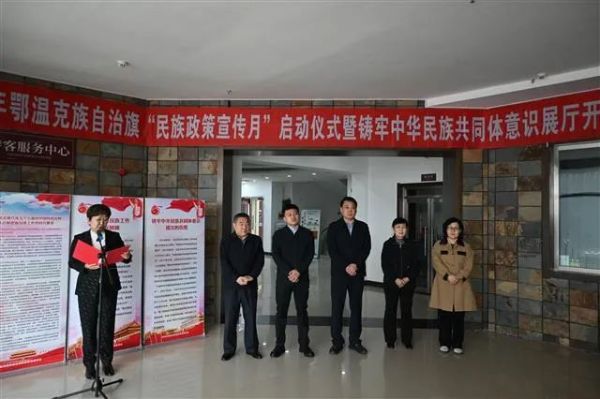 5月8日,鄂温克族自治旗举行2025年“民族政策宣传月”启动仪式暨铸牢中华民族共同体意识展厅开馆仪式。旗领导杨磊、雪萍、韩铮、孟丽丽、涂立彬出席活动,旗民委委员单位主要负责同志参加。