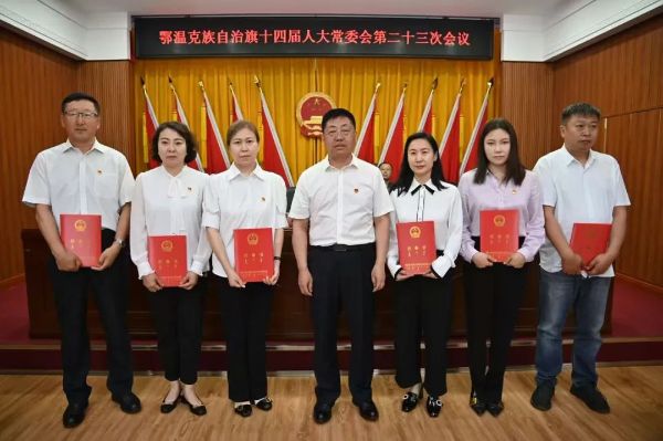 会议还进行了人事任免事项。任命黄心蕊为旗人大常委会民族和教育科学文化卫生工作委员会主任,陶英为旗人大常委会代表工作委员会主任,赵日格图为旗人大常委会社会建设工作委员会主任,娜仁托雅为旗卫生健康委员会主任,额尼日乐为旗医疗保障局局长,赵志明为旗农牧和科技局局长。