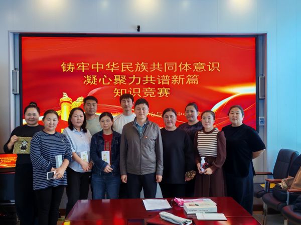 活动组织学习了《内蒙古自治区促进民族团结进步条例》与《新时代党的民族工作应知应会手册》相关内容。随后,围绕“铸牢中华民族共同体意识”主题开展了知识竞赛,内容涵盖党的民族理论政策、党纪学习教育、选举法、法律法规、“两个维护”、民族团结及传统文化等多个方面。竞赛环节丰富多样,设有必答题、判断题和选择题等,形式灵活,参与度高;经过三轮激烈角逐,最终评选出一等奖1队、二等奖2队、三等奖2队,以及“最佳风采奖”和“最具潜力奖”各1名。