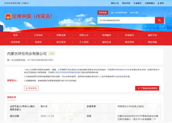 2025年11月25日,内蒙古呼伦肉业有限公司经办人到鄂温克旗政务服务中心办理公司设立业务,窗口工作人员核查该企业信用信息后,属于信用良好企业,满足信易+帮办代办条件。
