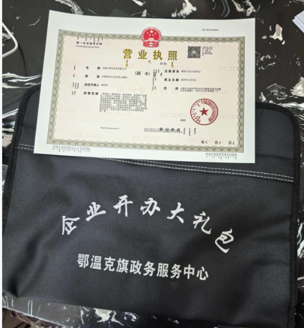 (图为鄂温克旗政务服务中心为该企业发放企业开办大礼包)