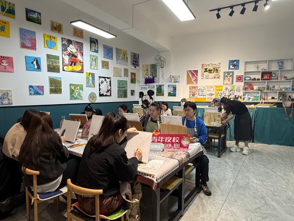 学员们热情满满、全程认真投入,从一开始的手忙脚乱、无从下笔,到慢慢找到感觉、渐入佳境,一步步沉浸在艺术创作的快乐里。大家边画边交流技巧、分享心得,彼此学习、互相鼓励,在一笔一画中释放工作生活的压力,在色彩碰撞中陶冶情操。经过两节课的学习,每位学员都完成了属于自己的油画作品。不少参与学员表示,平时很少有机会接触油画这类艺术活动,这次青年夜校不仅让自己体验到了油画创作的乐趣,认识了很多志同道合的朋友,也让下班后的生活充实起来,希望未来能有更多不同类型的青年夜校课程。