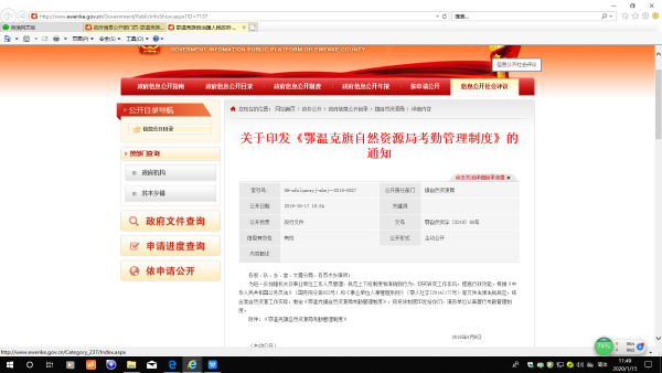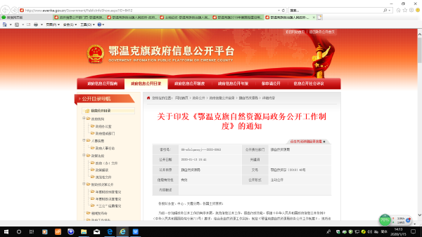 2、推进政务公开制度化建设,明确任务分工,落实责任。《鄂温克旗自然资源局政务公开工作制度》(鄂自然资字[2019]40号),明确规定了政务公开各项工作的办事流程及标准。