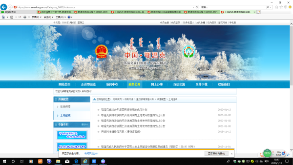 5、规范政务公开办文流程。将“五公开”要求落实到办文、办会程序,按照“谁起草、谁解读”的原则,落实政策性文件与政策解读同步组织、同步审签、同步部署机制。按照呼伦贝尔市、鄂温克族自治旗有关要求,我局进一步完善网站管理,经过层层审核。截至目前,全年简报139条,政府门户网站共发布各类信息共计59条。其中,公开土地使用权出让公告3条;不动产登记工作信息共6条;部门工作动态信息共24条;土地利用总体规划(2010-2020年)公告信息共1条;第三次国土调查类信息共7条;宣传活动类信息共5条;安全生产类信息8条;违建别墅类信息共5条。在旗微信公众号共发布各类信息58条。主动公开现行文件8条。