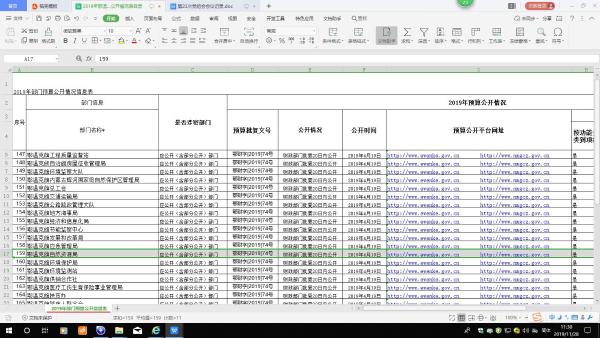 4、旗财政局于2019年3月组织了2019年度预算公开工作。分别于2019年3月28日、4月19日将鄂温克旗2019年旗本级、苏木乡镇及旗直行政事业单位共计182个部门预算、“三公”经费情况全部通过内蒙古自治区财政厅预决算公开平台、政府门户网站政务公开平台向社会公开。
