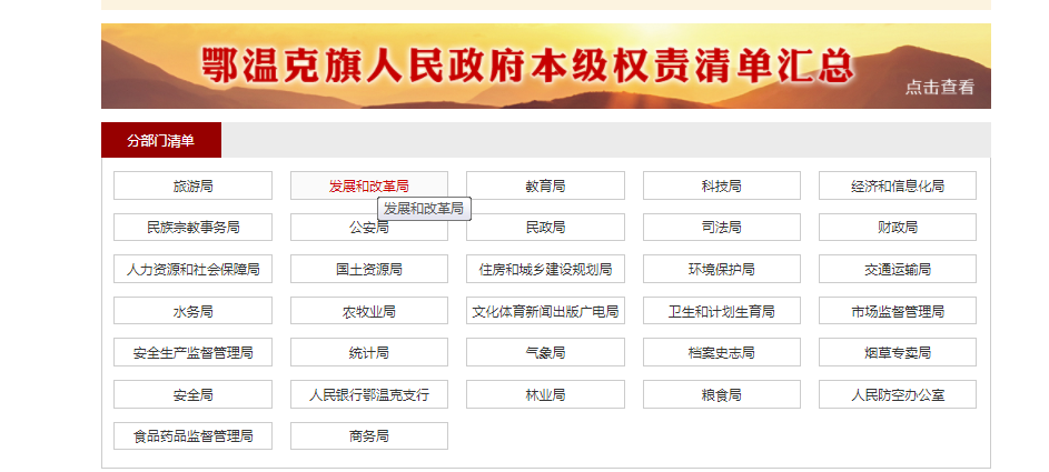1.做好“八张清单”公布工作。按照自治区编办关于“八张清单”公布版面与自治区一致的要求,旗编办及时与旗政府网络中心对接,达到“八张清单”公布形式与自治区统一。在网站版面制作完成的基础上,旗编办又组织全办人员将“八张清单”内容进行了重新录入,及时在鄂温克旗政务网新版依法行政栏目内开通运行。