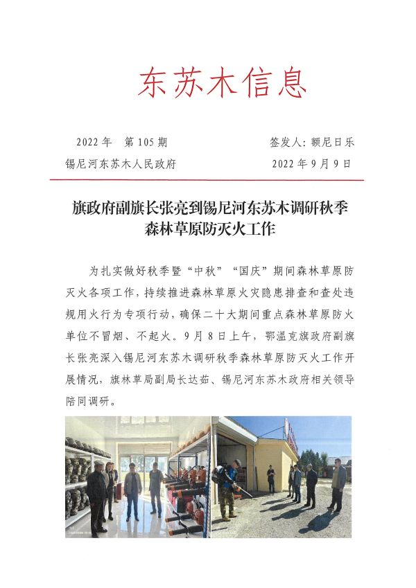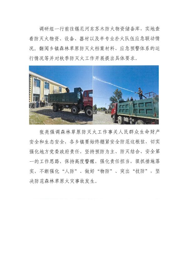 旗政府副旗长张亮到锡尼河东苏木调研秋季森林草原防火工作