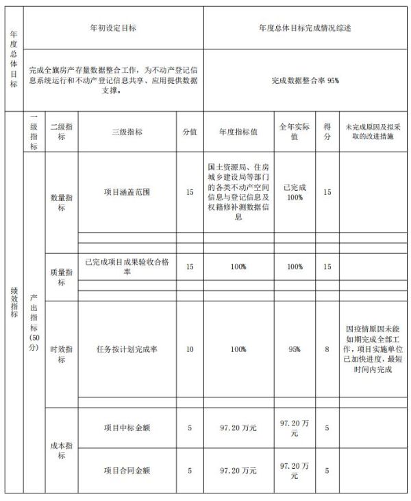 1.不动产数据整合项目自评综述:根据年初设定的绩效目标,项目自评得