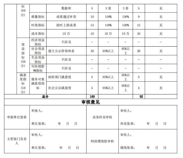 评得分 92 分。全年预算数为 10 万元,执行数为 10 万元,完成预算的 100%。