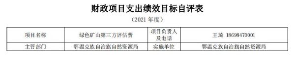 4. 绿色矿山第三评估费自评综述:根据年初设定的绩效目标,项目自评