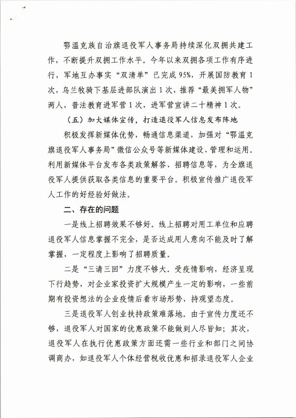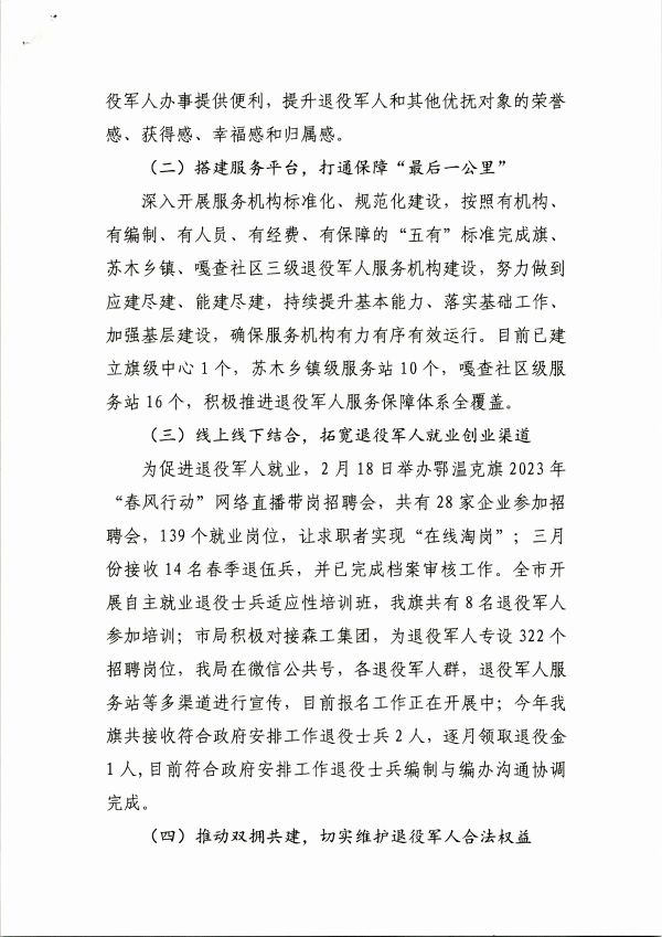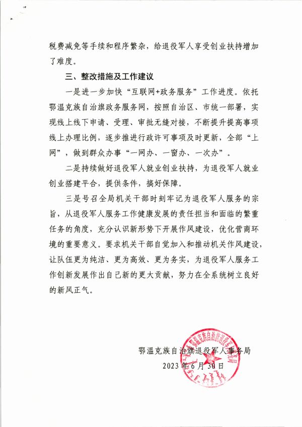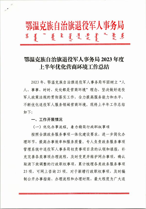 鄂温克族自治旗退役军人事务局2023年度上半年优化营商环境工作总结