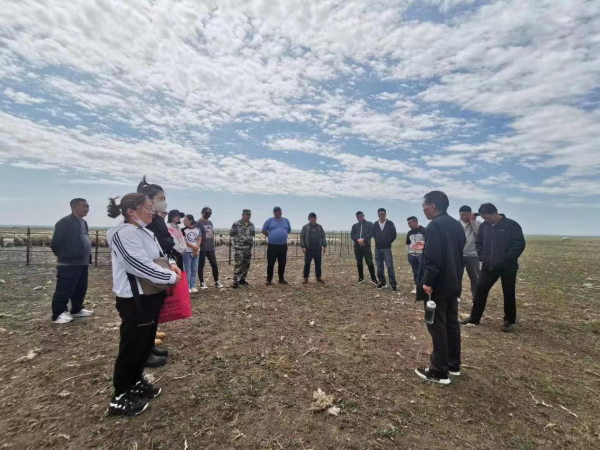 在科技示范户巴雅尔图家中,指导员通过现场指导和技术服务形式对羊进行疫病诊断、选中选配、疫病防控、科学养殖等方面进行讲解指导。