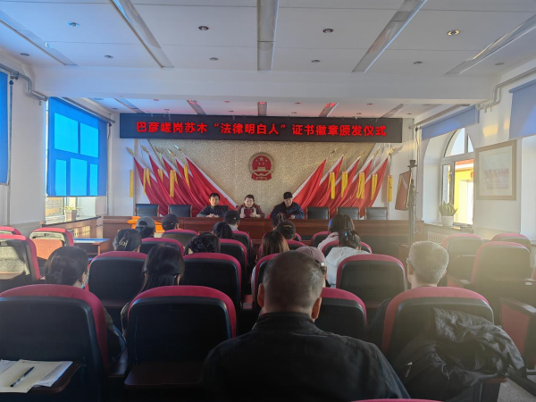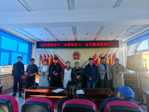 为进一步推进法治乡村建设,充分发挥“法律明白人”在普法宣传、人民调解、矛盾纠纷排查化解和乡村振兴中的重要作用,增强“法律明白人”的荣誉感和责任感。2023年10月24日,巴彦嵯岗苏木组织开展“法律明白人”证书徽章颁发仪式。