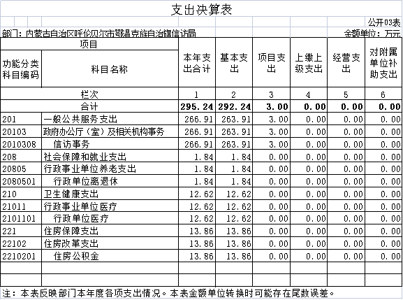 内蒙古自治区呼伦贝尔市鄂温克族自治旗信访局部门2022年度本年支出决算合计295.24万元,其中: