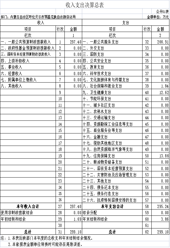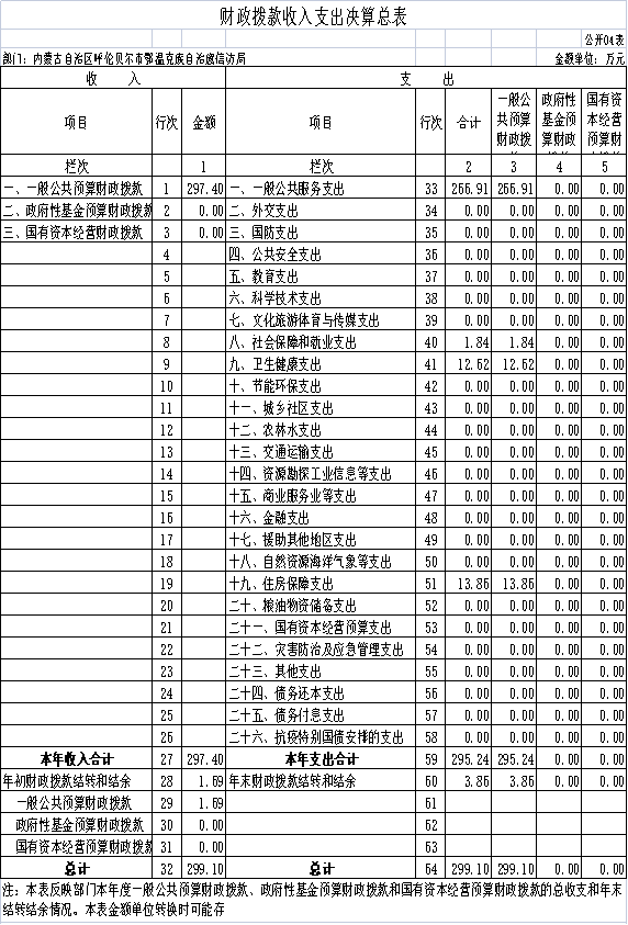 名称: | 内蒙古自治区呼伦贝尔市鄂温克族自治旗信访局2022年度决算公开报告 | 文号: | 无 |
