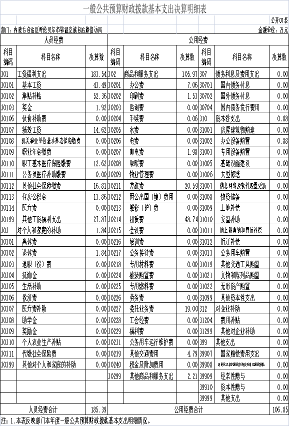 (一)人员经费185.39万元。主要包括:基本工资43.49万元、津贴补贴52.36万元、奖金1.92万元、社会保障缴费16.81万元、绩效工资14.62万元、其他工资福利支出27.87万元、退休费1.84万元、住房公积金13.86万元、 职工基本医疗保险缴费12.62万元。