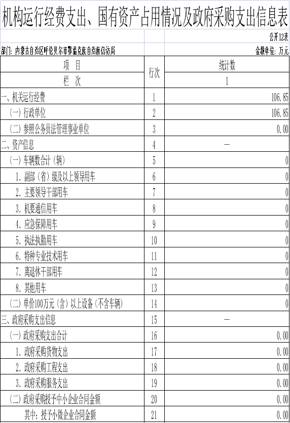 十二、机构运行经费支出、国有资产占用情况及政府采购支出信息表