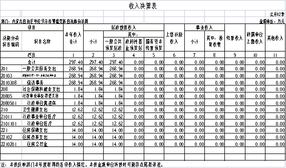 1.本年收入决算合计297.4万元。与上年决算相比,增加11.38万元,增长3.98%,变动原因:补发2021年调标工资、基础绩效奖。