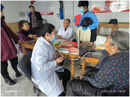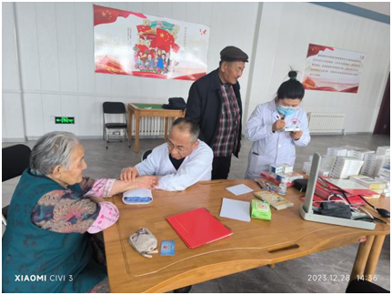 同时前来义诊的人络绎不绝,号脉、问诊、检查、诊断、宣教、测血压、血糖、等义诊工作都在有条不紊的进行着。义诊医疗队一边认真地给群众检查身体,一边耐心地解答大家提出的疑难问题,并对前来义诊人员进行一对一个体化健康教育,此次共义诊30余人次,发放2024健康宣传品国家基本公共卫生服务项目、中医养生台历100余份。