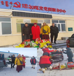 1月4日,鄂温克族自治旗爱心义工协会联合延福寺(伊敏宝音楚固拉图寺)深入巴彦塔拉达斡尔乡民族乡诺尔嘎查开展爱心捐赠活动,向诺尔嘎查困难党员、残疾人士、低保家庭送去慰问金和爱心物资。