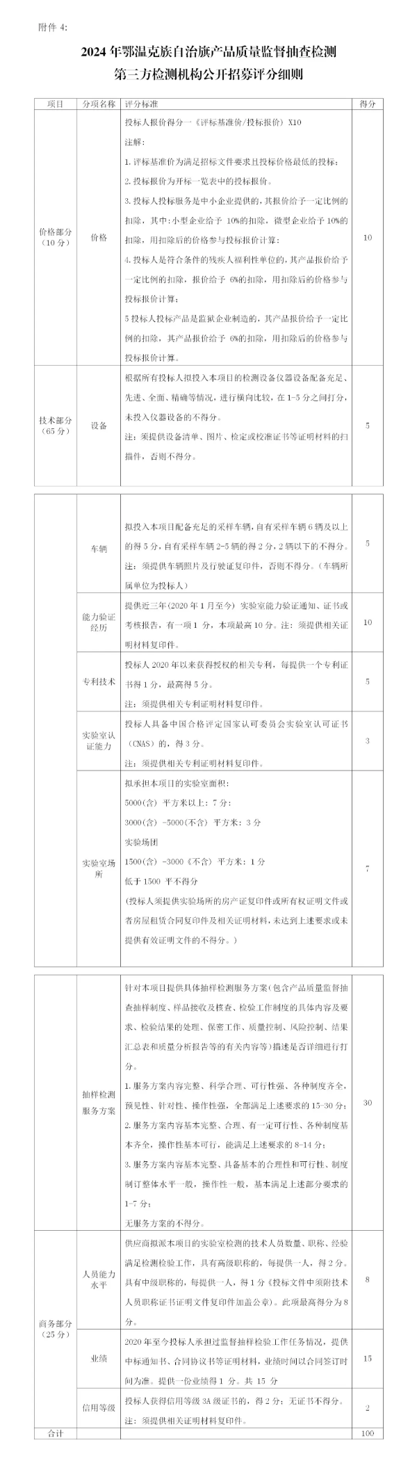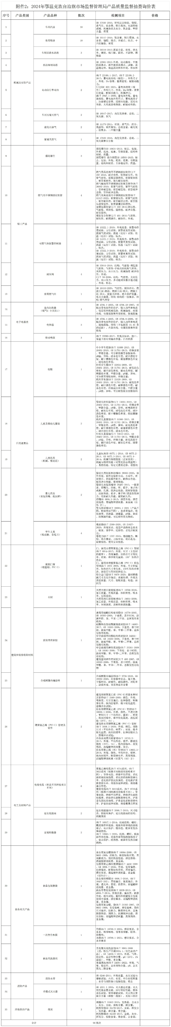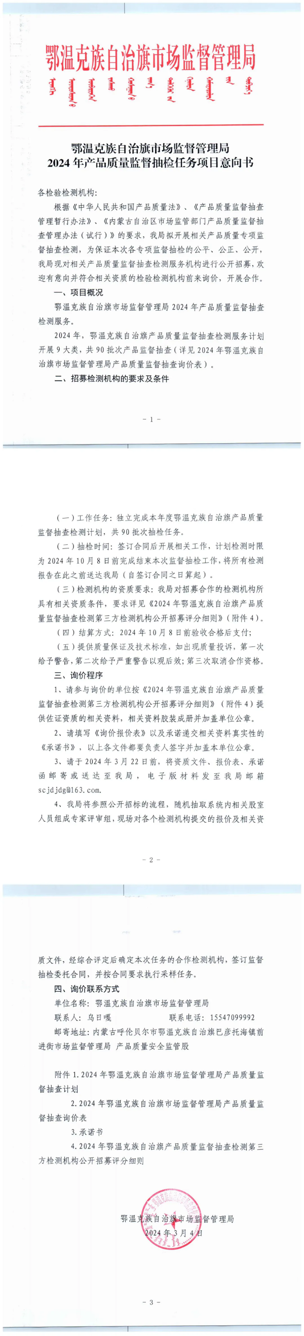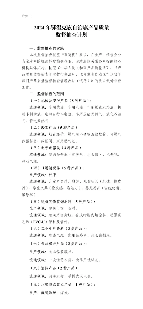 鄂温克族自治旗市场监督管理局2024年产品质量监督抽检任务项目