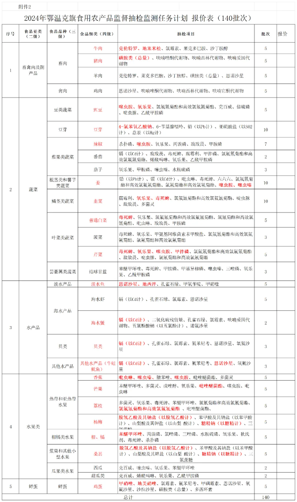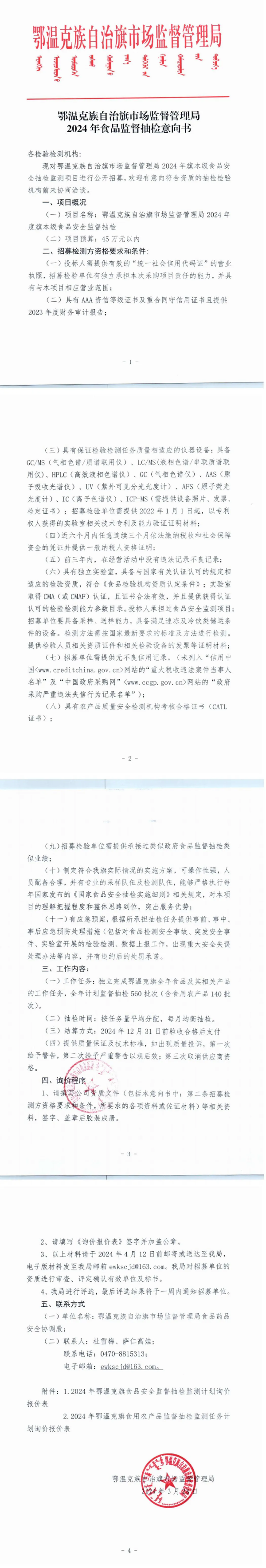 鄂温克族自治旗市场监督管理局2024年食品监督抽检意向书