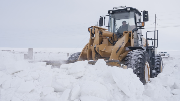 在驶过西博嘎查党群服务中心约五公里后,记者见到了驾驶铲车推雪的工作人员。此时他刚刚为几户牧民开好路,正准备前往下一家。记者紧跟随其后,原以为有这个“大家伙”的开路可以马不停蹄,一路畅通。可不曾想,受降雪影响,牧区温度最低在-20℃左右,加之风力大,积雪已经大面积堆积成块,前行的铲车也无法做到一路推雪而行,也需时不时的将厚厚的积雪铲起并倾倒在一旁。为快速打通道路,不耽误牧民群众转场和接羔育羔,工作人员倒班上阵,经过连续奋战,原本被积雪覆盖的道路逐渐变得宽敞平坦。