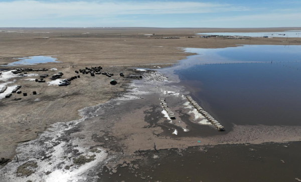 去冬以来,本地区降雪量大,随着气温转暖,积雪在骤然升温作用下,昼化夜冻,发生融雪性洪水,河道水位上涨,雪融水在短时间内涌上了水泥路及乡间砂石路,对低洼地段及沿线居牧民造成房屋过水被淹、被水围困、棚圈过水淹没坍塌、被雪融水浸泡的饲草等不同程度的损失,西博嘎查1处水泥路路基被水侵蚀掏空,出现安全隐患。