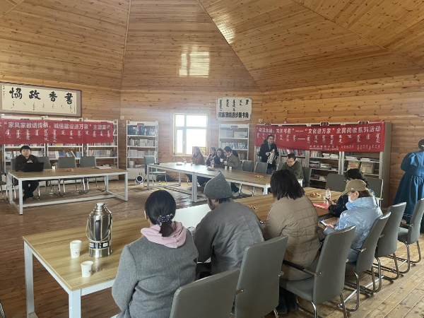 在第29个《世界读书日》来临之际,为深入推进全民阅读,丰富群众精神文化生活,助力乡村振兴,4月22日,锡尼河西苏木开展了“文化进万家”全民阅读系列活动。以《阅读北疆,共沐书香》为主题,以理论宣讲、知识问答、阅读分享等环节进行,周围的牧民群众、热心读者、党员干部、人大代表和锡尼河西苏木学校、诺图格幼儿园师生积极参加活动。