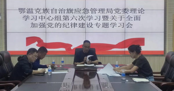 为认真学习领会习近平总书记关于全面加强党的纪律建设的重要论述,6月7日,鄂温克族自治旗应急管理局召开党委理论学习中心组2024年第六次集体学习会暨关于全面加强党的纪律建设专题学习会,会议由党委书记、局长哈布尔主持,党委委员参加。