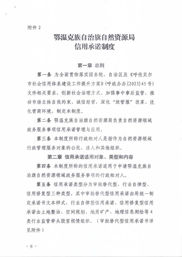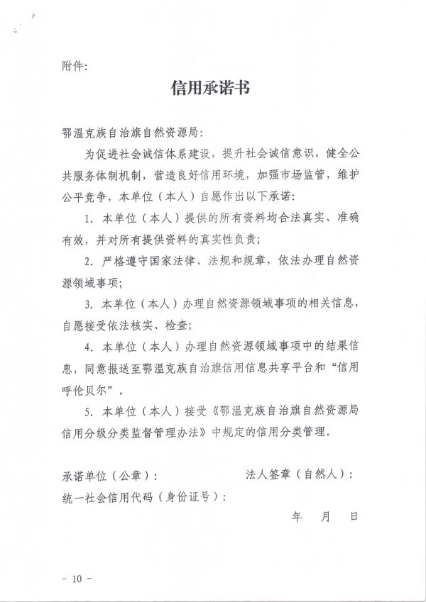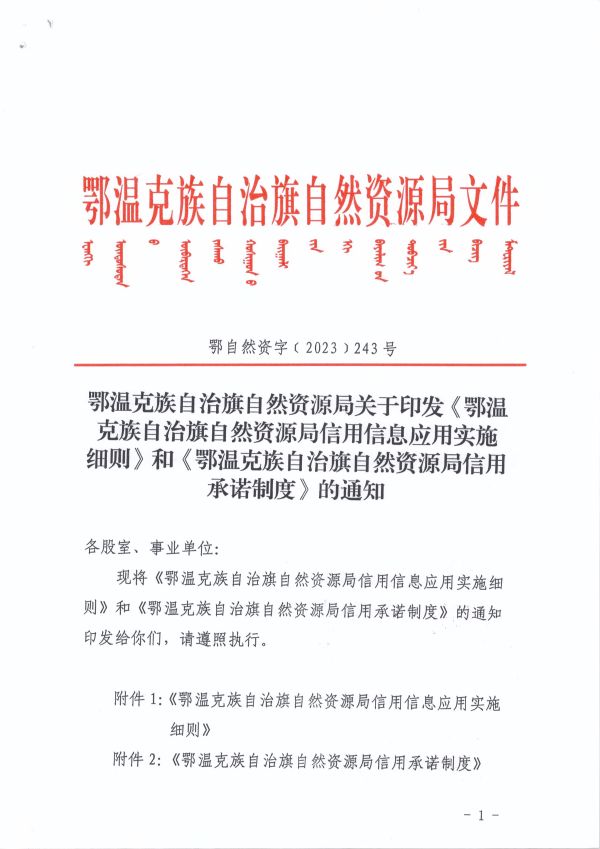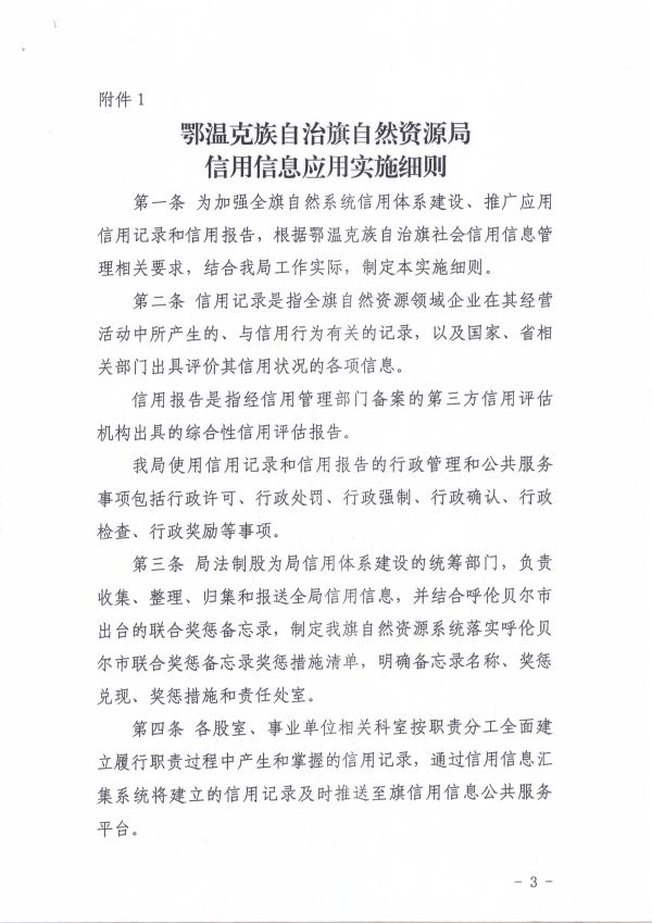鄂温克族自治旗自然资源局关于印发《鄂温克族自治旗自然资源局信用信息应用实施细则》和《鄂温克族自治旗自然资源局信用承诺制度》的通知